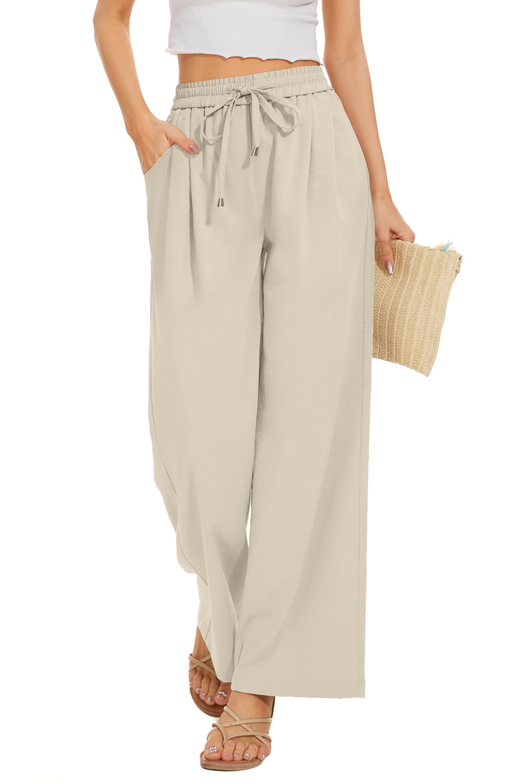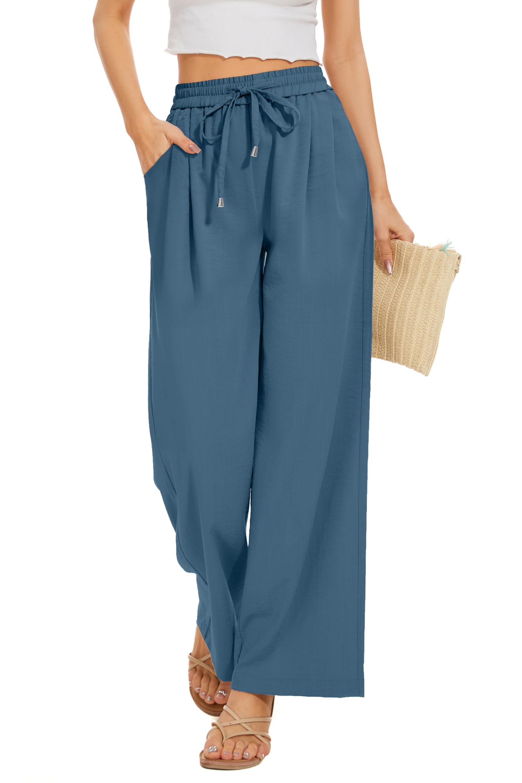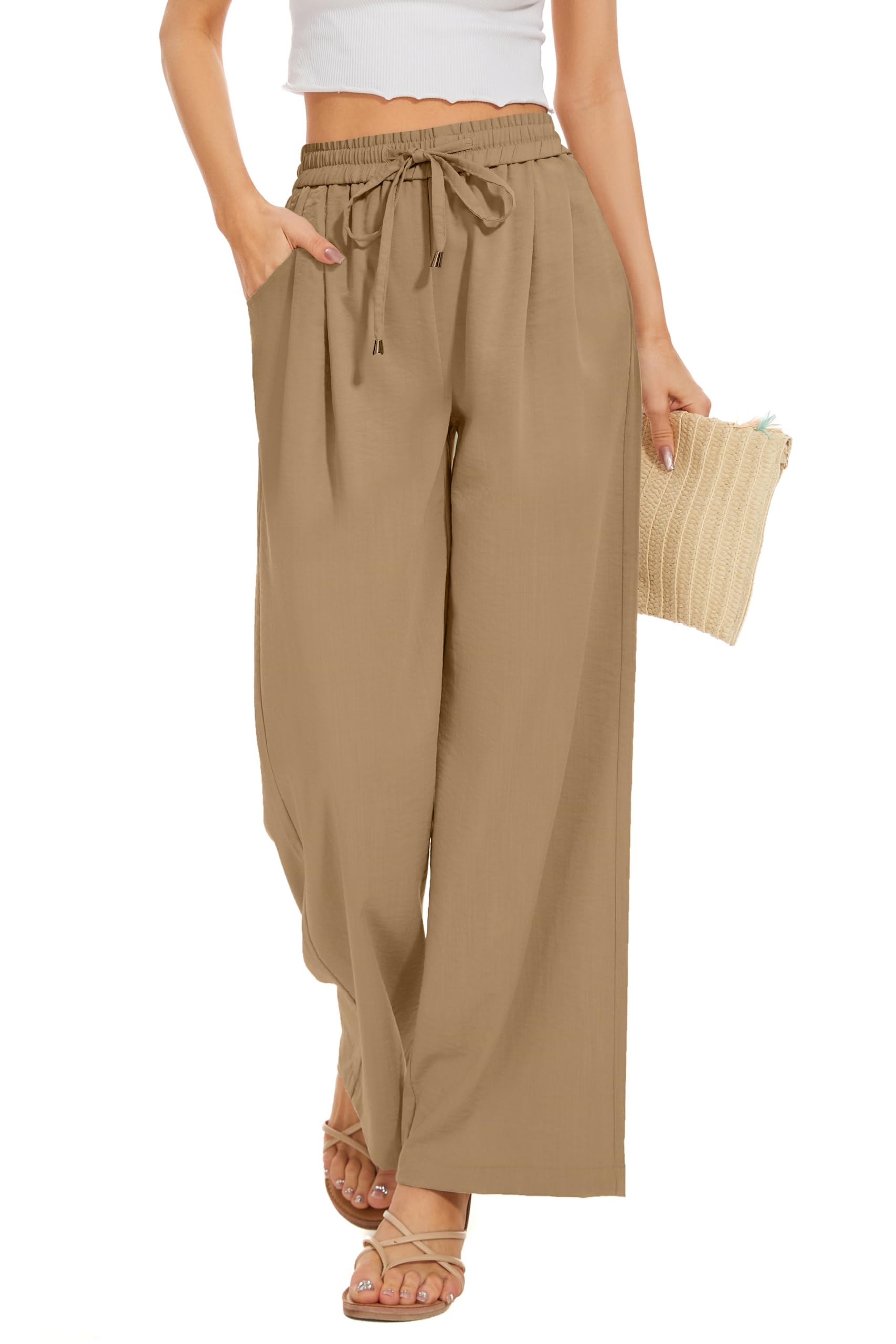 Women Summer Pants Drawstring Waist Wide Leg Pants Loose Fit with Pockets Pull On