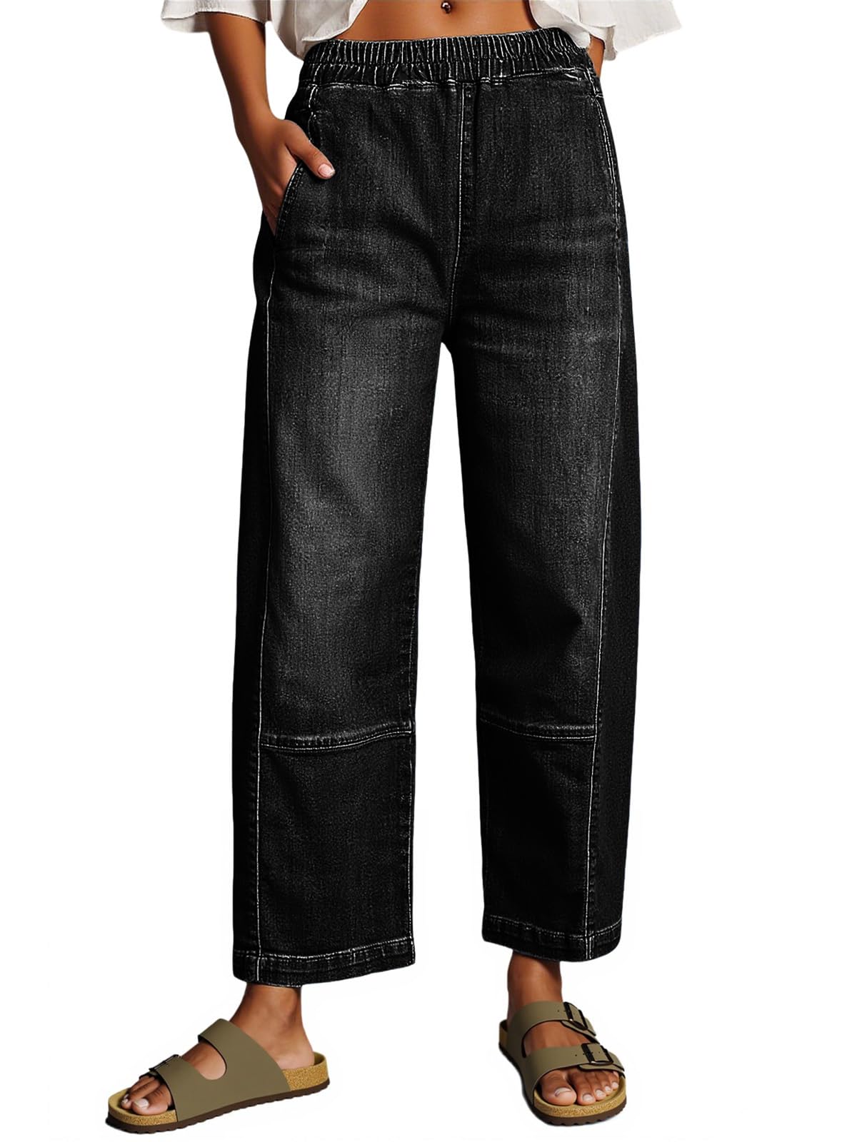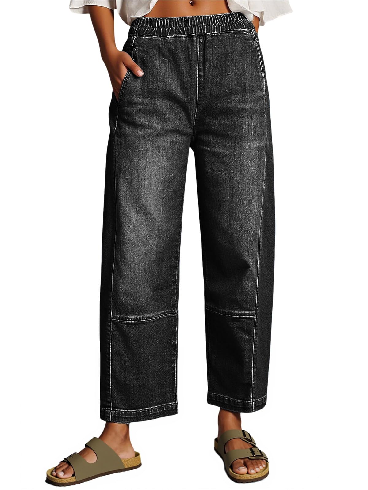 Womens Baggy Cropped Jeans Elastic High Waisted Wide Leg Trendy Stretchy Seam Barrel Capri Denim Pants