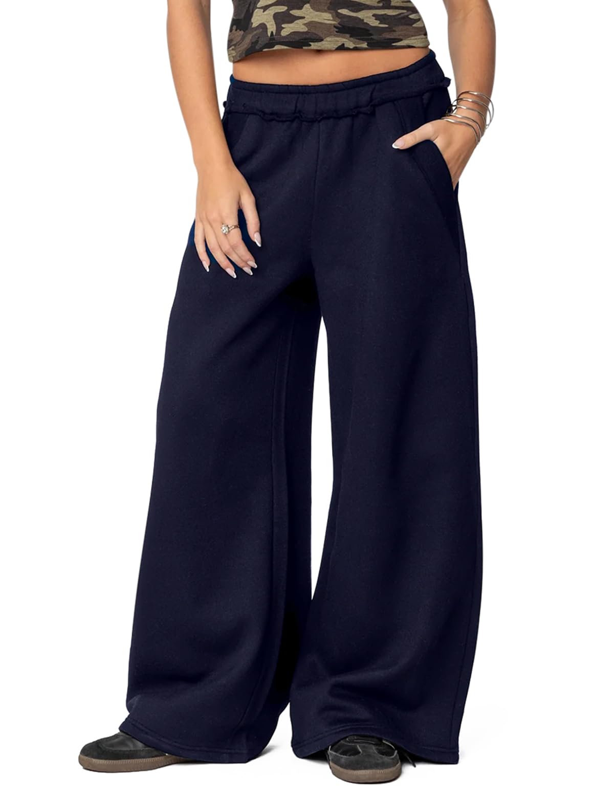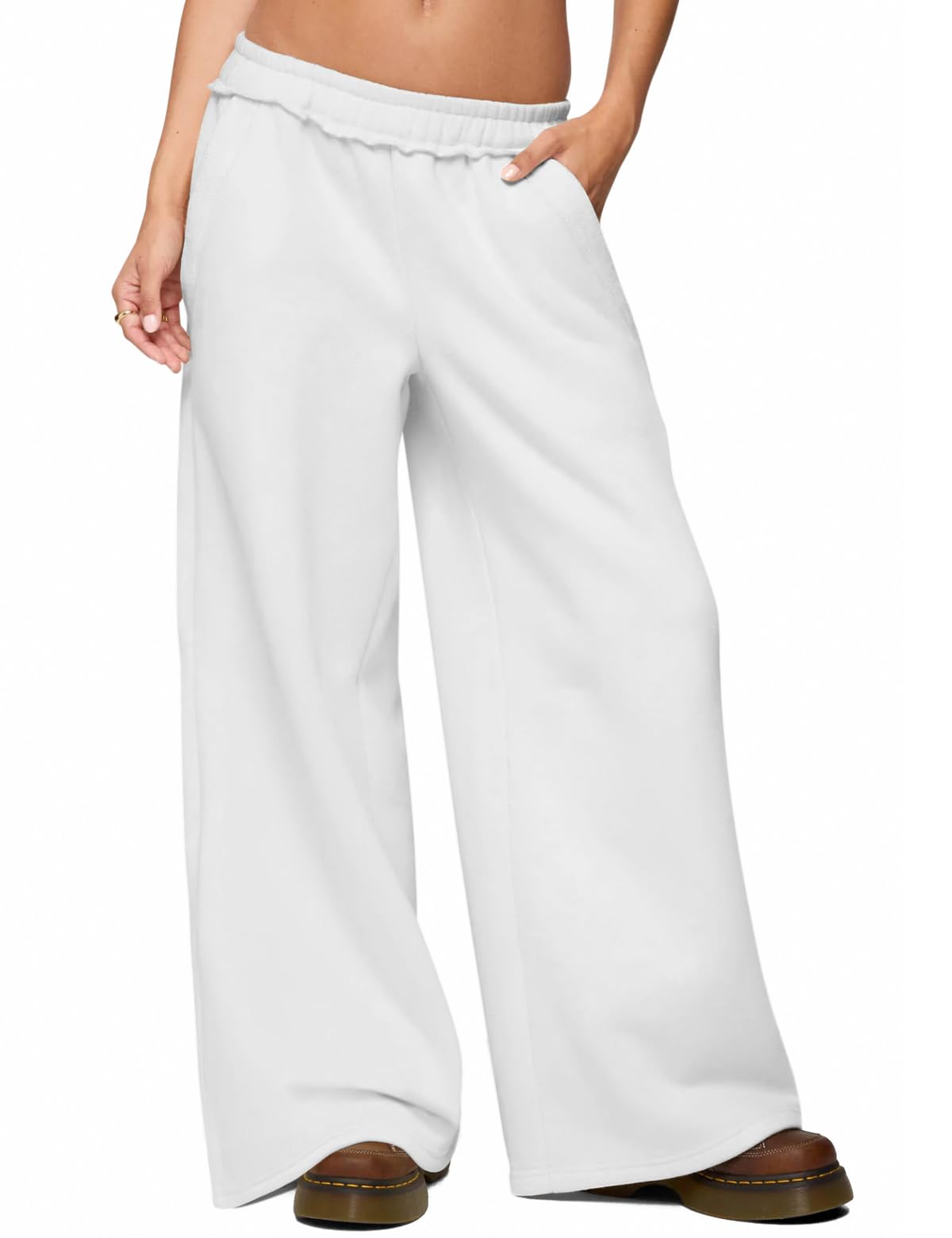 Womens Fleece Lined Sweatpants Wide Leg Baggy Thermal Lounge Pants Raw Hem Elastic Waist Oversized Sweat Pants