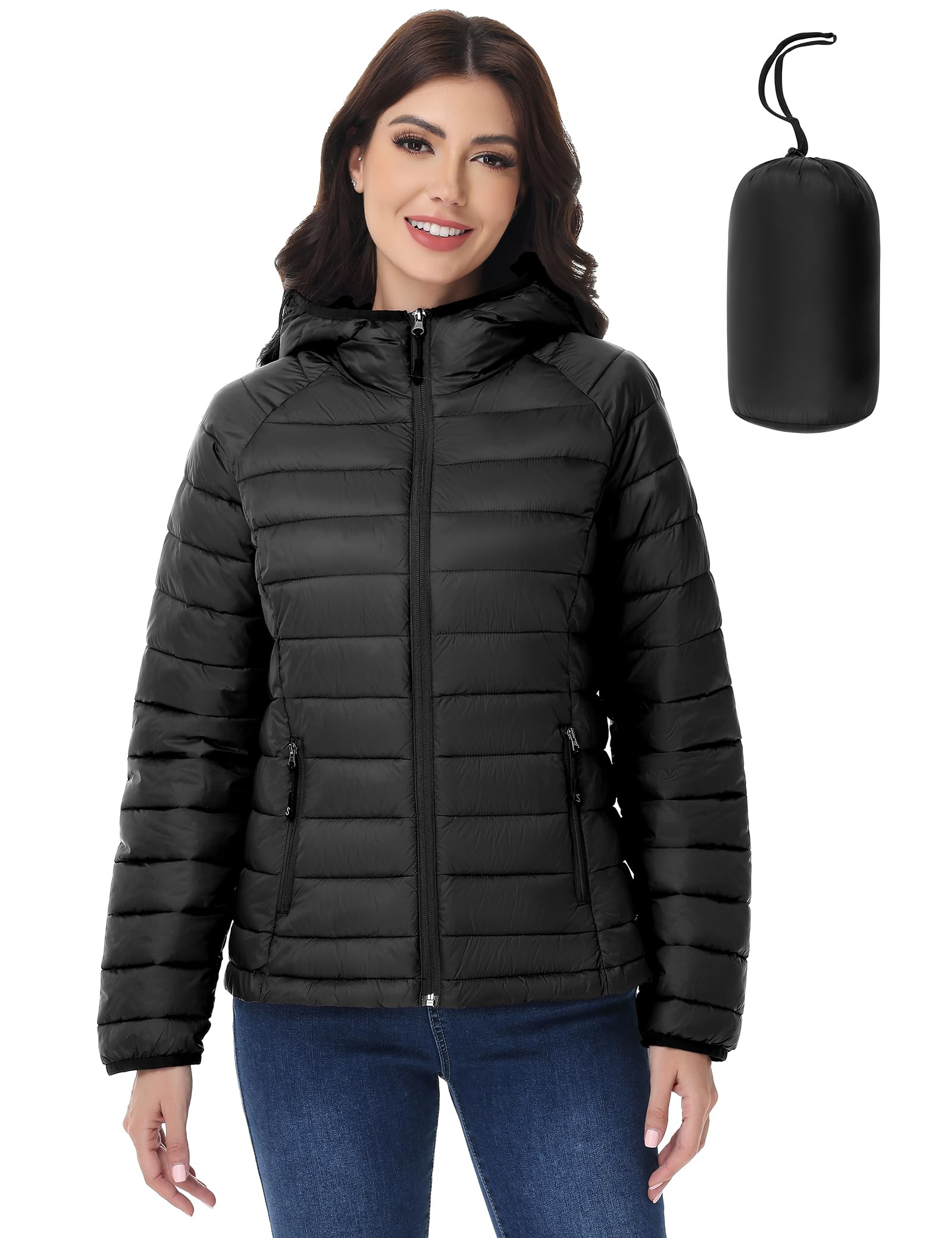 Womens Packable Puffer Jacket, Lightweight Puffer Jacket with Hood