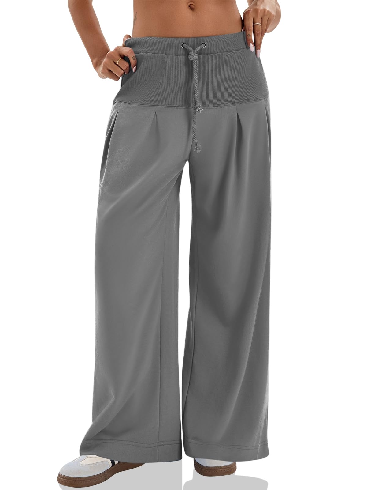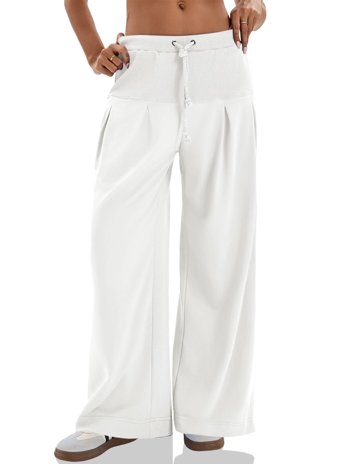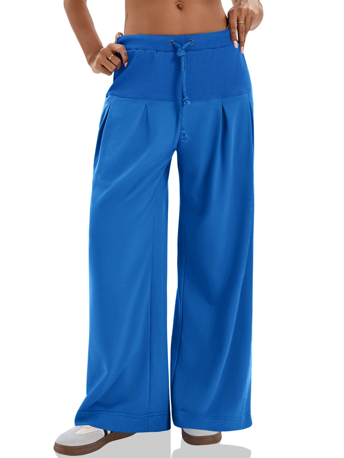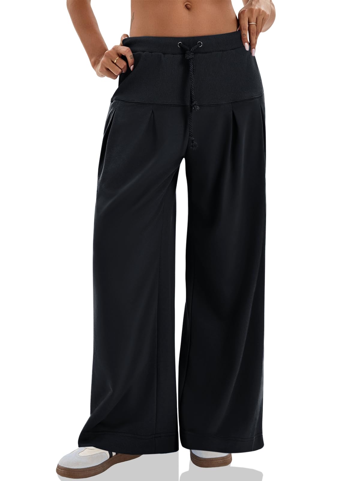 Womens Pleated Wide Leg Sweatpants Baggy Drawstring High Waisted Pants Casual Comfy Palazzo Lounge Pants