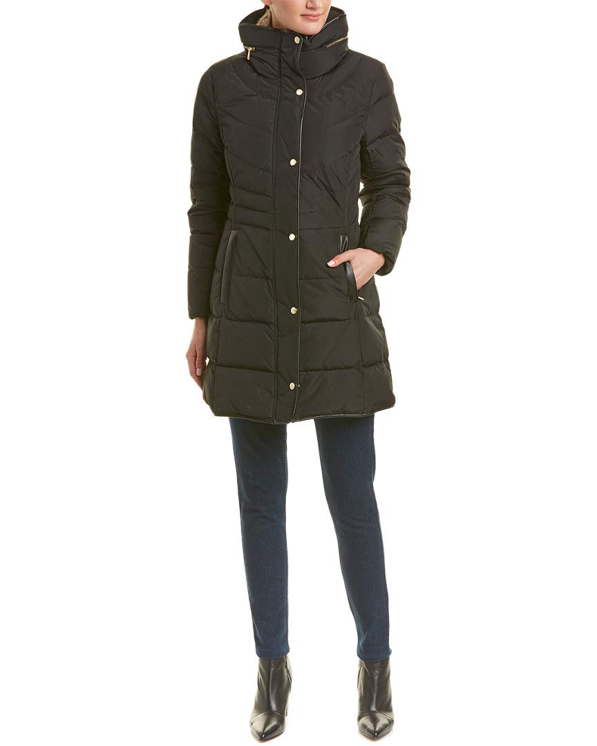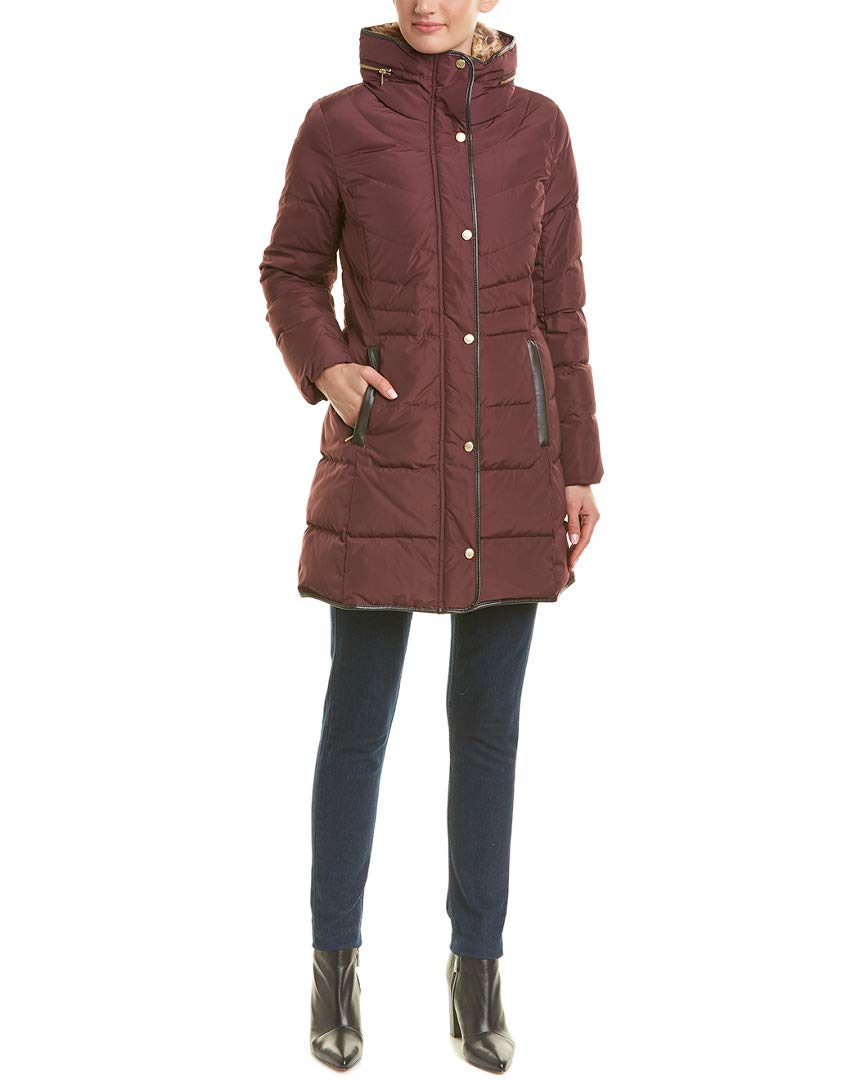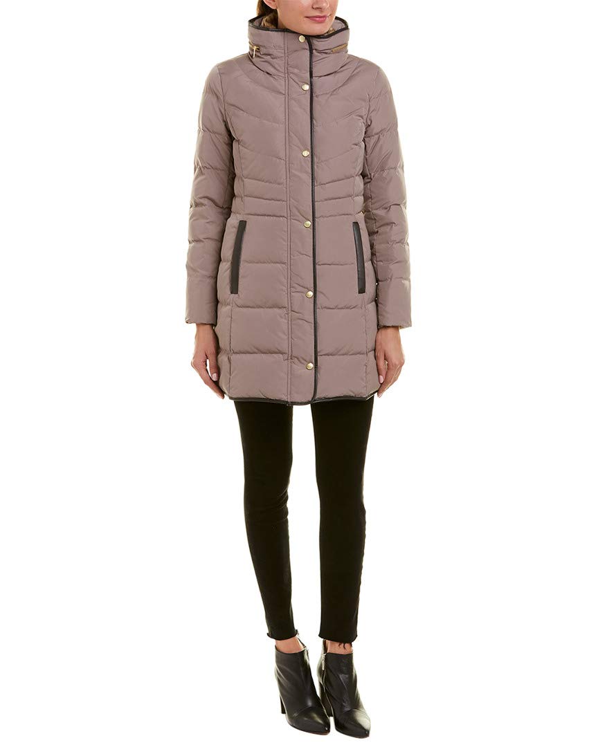 womens Taffeta Down Coat With Faux Fur Collar