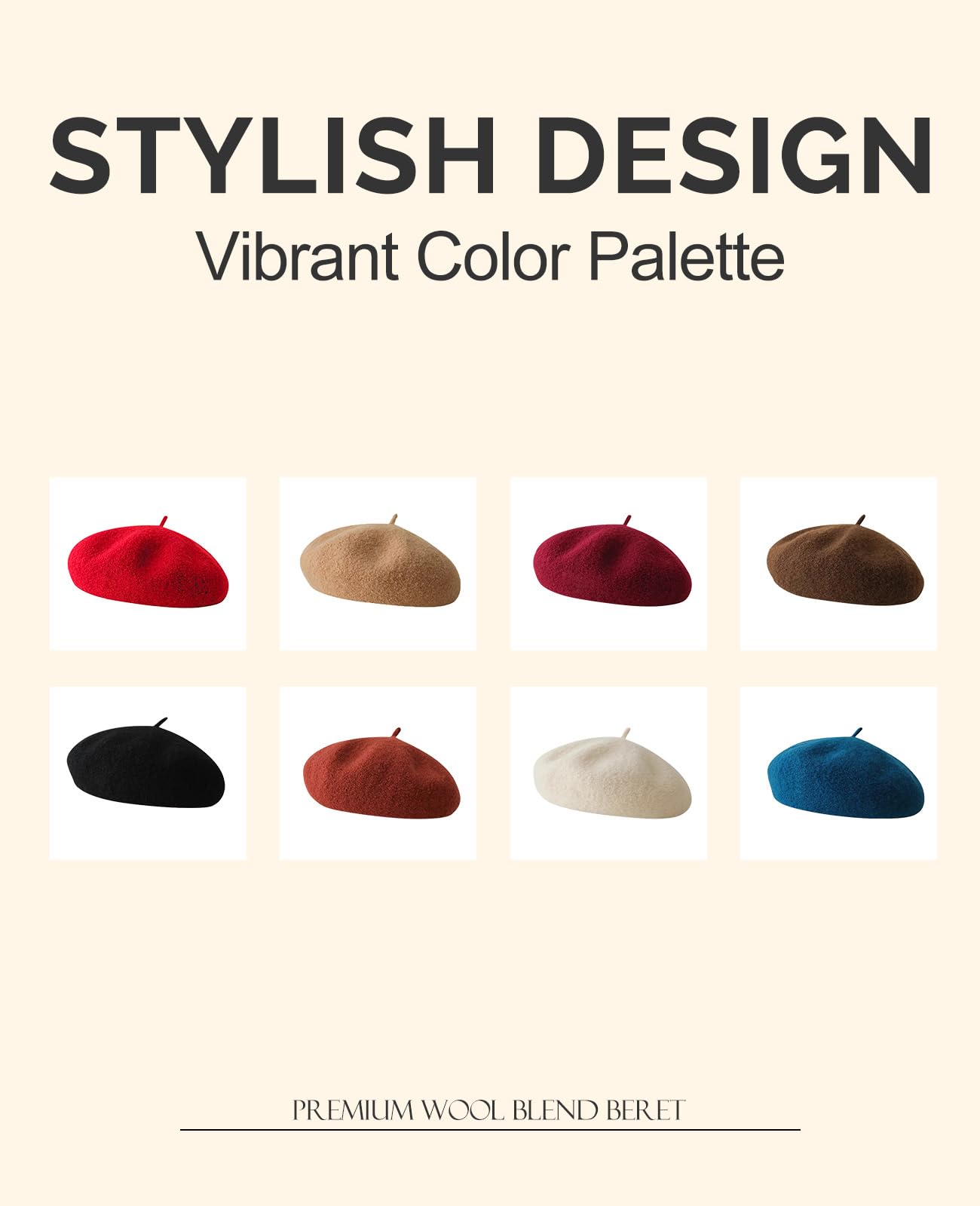 Wool Berets for Women - Classic French Beret Hats for Women and Kids, Solid Color Artist Style