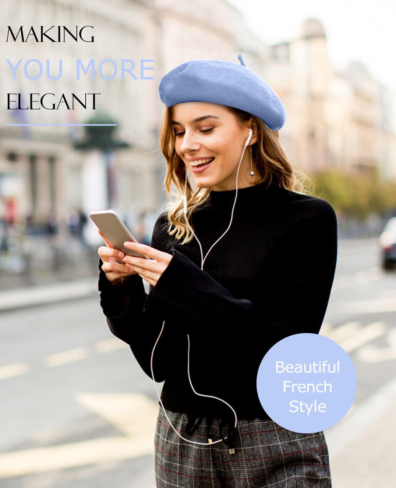 Wool Berets for Women - Classic French Beret Hats for Women and Kids, Solid Color Artist Style